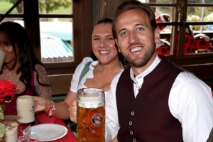 凯恩说道:“上周日我们参加了慕尼黑啤酒节。我只喝了一杯啤酒——用那种大杯子装的,一杯就够了。”