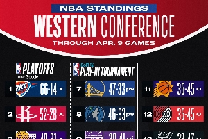 西部情况:湖人保底前六!勇士掉进附加赛!雷霆锁了联盟第一!太阳被淘汰,前十已经确定!
