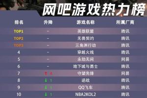 体育资讯4月10日讯 三月网吧游戏热力榜更新,前十中有八款腾讯系游戏,守望先锋冲上第七,英雄联盟、无畏契约仍旧位列第一、第二。
