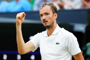 男单第四轮,16号种子梅德韦杰夫鏖战三盘,以7-6(6)/6(1)-7/6-4险胜新星勒纳-钱,终结对其的两连败,成功锁定最后一个八强席位。