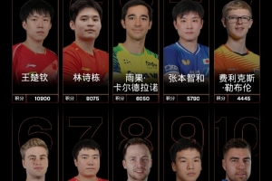 男子单打,国乒球员王楚钦、林诗栋位列前二,梁靖崑位列第七,向鹏位列第九。户上隼辅排名上升1个名次位列第19;张禹珍排名上升1个名次位列第20。