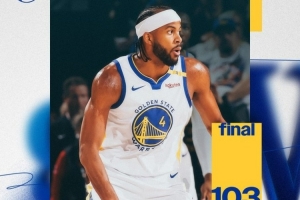 赛后勇士官方晒出赢球海报,穆迪登上封面。