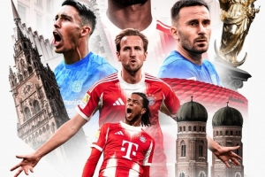 拜仁官方更新社媒动态,发布了为此役制作的海报,凯恩、奥利塞、若纳坦-塔出镜。