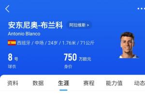 遭到姆巴佩犯规的布兰科出自皇马青训,曾代表皇马一线队出战过6场比赛,2023年夏窗才以400万欧的转会费加盟阿拉维斯。