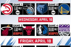 体育资讯04月14日讯 NBA官方刚刚公布了附加赛的具体赛程安排(图片是美国东部时间,下文均为北京时间):