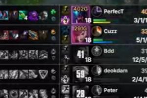 体育资讯11月9日讯 今日S15决赛T1次局不敌KT,而本局中Deokdam的EZ可以说是与胜利的关系不大,在最后一波团战获胜后Deokdam仍对位落后Gumayusi193经济。