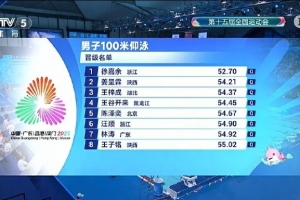 体育资讯11月11日讯全运会男子100米仰泳半决赛,徐嘉余第一、汪顺第六晋级决赛。