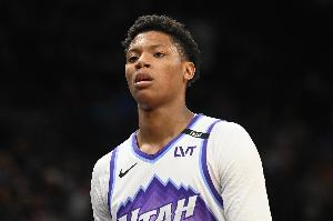 本场比赛,爵士今年5号秀贝利发挥不错,进攻端打得很果断,一手单打撤步三分看起来很自信。
