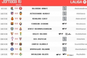 稍早时候,马竞将在12月13日21:00主场迎战瓦伦西亚;晚些时候,皇马将在12月15日04:00客场挑战阿拉维斯。