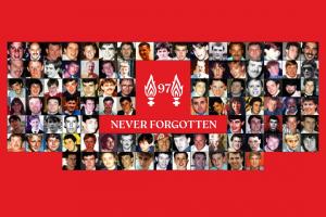 利物浦官方社媒晒出在惨案中去世的球迷拼接照片,并写道:“今天是希尔斯堡惨案36周年纪念日。我们的思绪与所有受影响的人们,以及永远不会被遗忘的97名球迷同在。你永远不会独行。”