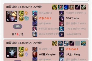 体育资讯4月16日讯 LPL第二赛段组内赛iG不敌NIP,赛后GALA回到基地连开了两把韩服Rank,但两局均失利。