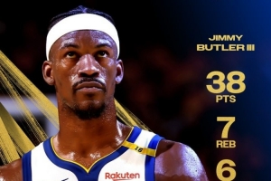本场比赛,巴特勒首发出战39分43秒,20投12中,其中三分4中2,另外罚球18罚12中,狂砍38分7篮板6助攻3抢断,率队晋级季后赛!