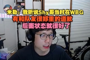 复盘时解说米勒表示Theshy的打法一直是这样,并说道:“我听说Shy哥当时在WBG,有和队友很郑重的道歉,后面状态就很好”