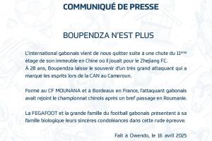 加蓬足球协会及整个加蓬足球大家庭向布彭扎的家人致以最诚挚的慰问,愿他们在这艰难时刻坚强面对。