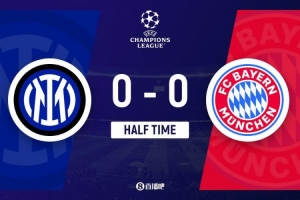 上半场比赛结束,国际米兰主场暂时0-0战平拜仁慕尼黑,总比分国米2-1领先拜仁。