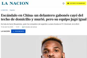 La Nacion的文章标题是:“丑闻!加蓬前锋布彭扎坠亡,但他的球队仍照常比赛。”