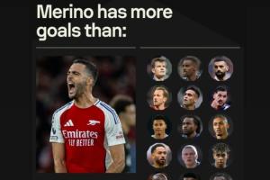 阿森纳晋级欧冠四强后,梅里诺在社交媒体转发了数据机构Sofascore的一张图片,内容是哈弗茨受伤后的同期进球数对比。