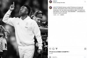 维尼修斯写道:“皇马终将归来!!感谢球迷一如既往的支持。在剩余的赛季中,我们必须团结一致,当前仍有冠军奖杯可争夺!誓死捍卫这支球队与俱乐部!🤍加油皇家马德里!同时祝贺阿森纳!”
