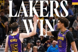 赛后湖人官方晒出赢球海报,里夫斯和海斯击掌的画面登上封面。