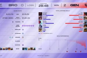体育资讯04月19日讯 LCK常规赛1-2轮,GEN轻松2:0横扫BRO,俱乐部战绩来到6-0(小分12-3),暂列联赛榜首。