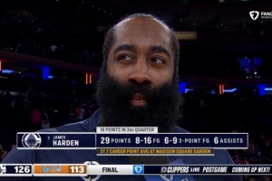 此役过后,哈登生涯在麦迪逊广场花园比赛的场均得分来到27.7分。