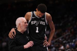 尽管阵容潜力巨大,这支球队仍存在诸多不确定性。首先就是文班亚马的伤情,他在生涯首次入选全明星后被诊断出右肩存在血栓,下赛季复出时间尚未确定。由于赛季提前报销,他与福克斯仅共同出战5场比赛(合计120分钟)。在这有限的样本中,马刺每百回合失分达118.3分,净效率为-4.3。另一个悬念是NBA现役执教时间最长的主教练波波维奇的未来,他在去年11月2日遭遇轻度中风后,本赛季由助理教练米奇-约翰逊临时接任,至今未宣布未来的计划。