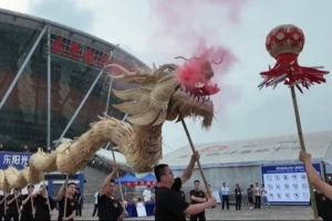 赛前,博主@保护我方山东队晒出了东莞银行篮球中心门外出现的舞龙表演,场面十分震撼。
