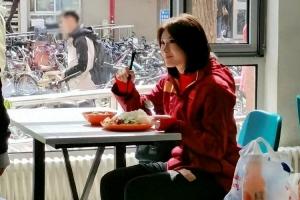 体育资讯04月19日讯 有网友晒出近期在北京体育大学食堂拍到的吴艳妮打饭吃饭的照片,吴艳妮的食量非常大。