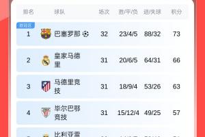 体育资讯04月20日讯 西甲第32轮,巴萨4-3逆转绝杀塞尔塔,先赛情况下领先皇马7分,皇马本轮将主场迎战毕巴。
