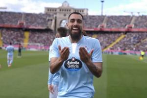 体育资讯4月20日讯 西甲第32轮比赛,伊格莱西亚斯上演帽子戏法,塞尔塔客场3-4不敌巴萨。