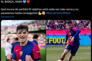 佩德里赛后也在社媒晒出庆祝照片,配文写道:“太棒了,巴萨!多么疯狂的比赛,我们离目标越来越近,在实现目标之前我们不会停下脚步!”