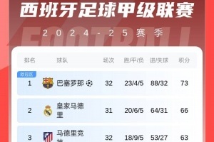 体育资讯4月20日讯 西甲第32轮,马竞0-1遭拉斯帕尔马斯绝杀,巴萨4-3绝杀塞尔塔。