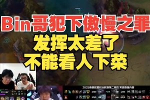 前职业选手Wayward解说本场比赛,赛后他点评说道:Bin哥犯下了傲慢之罪,这把发挥太差了。
