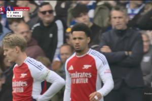 比赛第56分钟,阿森纳换人调整,换下今天表现出色的梅里诺和萨卡,换上恩瓦内里和斯凯利。被换下后,队医给萨卡的右腿包扎冰袋。