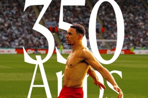 据利物浦官方数据统计,本场比赛是他代表球队出战的第350场里程碑。俱乐部官方也在社交媒体上晒出阿诺德的海报,并配上了350场字样的背景。