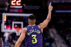 此役鹈鹕后卫麦科勒姆火力全开,打了36分钟28投16中,三分12中5、罚球5中3空砍全场最高40分外加5篮板7助攻1抢断,正负值+3。