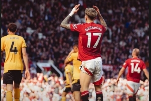 体育资讯4月21日讯 英超第33轮比赛,加纳乔踢满全场,最终曼联主场0-1不敌狼队。