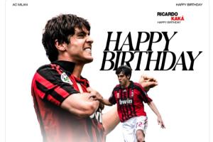 体育资讯04月22日讯 AC米兰官方在社媒发文,祝卡卡43岁生日快乐。