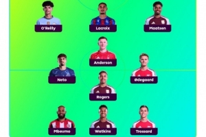 中场:埃利奥特-安德森(诺丁汉森林)、厄德高(阿森纳)、内托(切尔西)、罗杰斯(维拉)