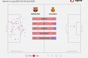 体育资讯4月23日讯 西甲第33轮比赛,巴萨主场1-0击败马洛卡。
