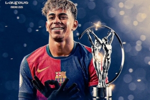 体育资讯4月23日讯 巴萨球员亚马尔在获得2025年劳伦斯世界体育奖的年度最佳突破奖后,发表了获奖感言。