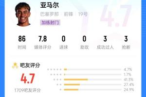 吧友给亚马尔仅打出4.7分,吧友热议: