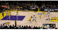 兰德尔突破下落时不慎打到詹姆斯面部吃到进攻犯规——全队第5记进攻犯规