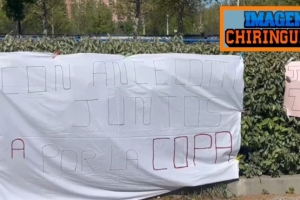 体育资讯4月24日讯 西班牙六台报道,皇马球迷在训练场外挂了三个横幅,鼓励球队一鼓作气拿下国王杯冠军。