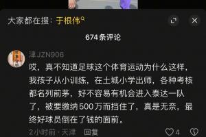 体育资讯04月24日讯 昨日一名球迷在于根伟的社媒评论区下留言,称自己的孩子有机会进泰达一队,但被要缴纳500万,于根伟也进行了回复。