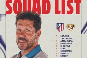 体育资讯4月24日讯 北京时间明天凌晨,马竞将在西甲第33轮比赛中主场对阵巴列卡诺,马竞公布了此役的球员名单,阿尔瓦雷斯、格列兹曼、加拉格尔在列。