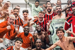 体育资讯4月24日讯 今天凌晨,AC米兰在意大利杯半决赛淘汰同城死敌国际米兰,亚伯拉罕今天在Instagram晒球员们的合照,庆祝胜利。