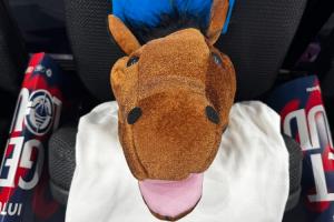 赛前,快船官方为“球迷墙”区域准备了马面头套。值得一提的是,掘金中锋约基奇正是狂热的赛马爱好者。