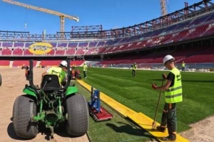 体育资讯4月25日讯 诺坎普球场已经开始铺设草皮,有望在下赛季恢复使用。