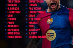 体育资讯04月25日讯 国王杯决战!巴萨战皇马大名单:莱万、巴尔德缺席,佩德里在列